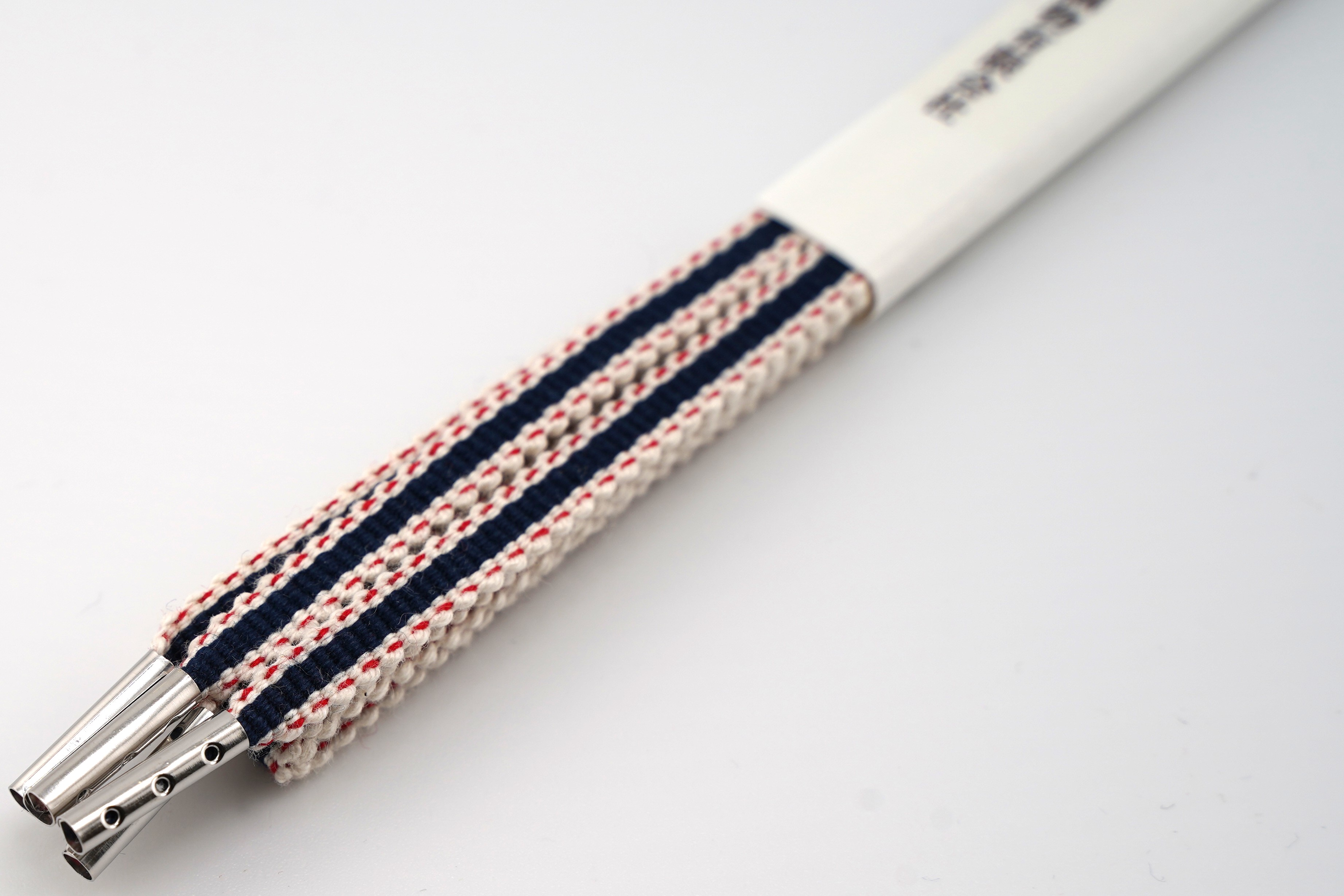 真田紐の風合いをお楽しみください。チップ部分にメタル加工を施し、より洗練されたくつひもとしてお楽しみいただけます。